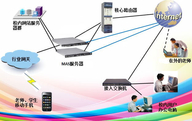 系统主要以服务器+手机等便携终端为载体的方式,通过信息化系统的实施,与用户现有的门户系统互通,将门户系统的应用延伸到手机上,扩大了应用面,同时实现各种短信、彩信内容发布。通过短信应用系统,在现有系统的基础上,采用生活中比较普及的手机终端,实现彩信校刊的编辑发送。